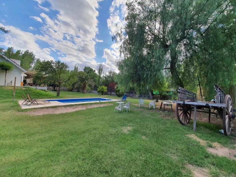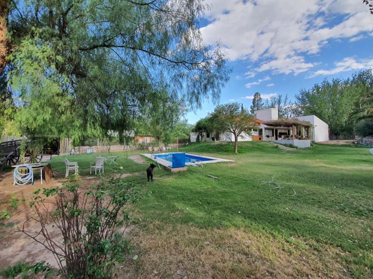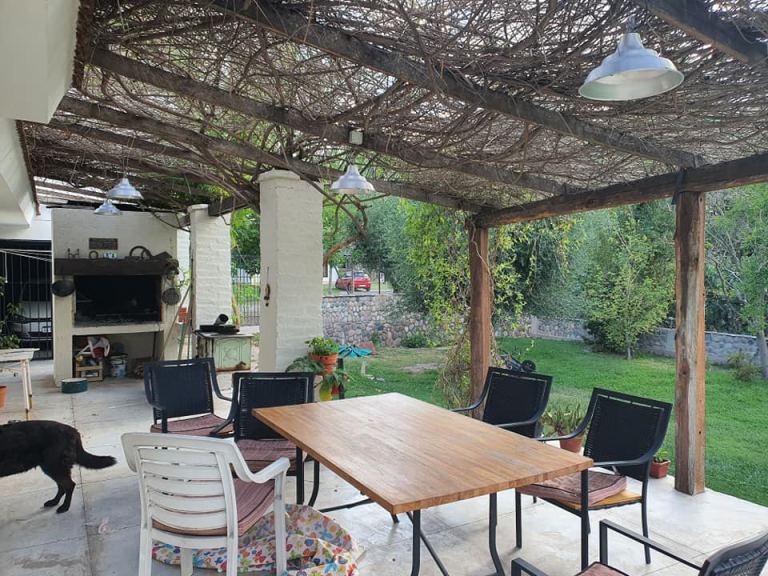 Inmobiliaria Romanazzi ofrece hermosa casa en venta, ubicada en Pasaje Privado Los Grillos de El Bermejo, Guaymallén, Provincia de Mendoza. La misma se encuentra totalmente distribuida en una planta, fantástico terreno esquina de 1700 metros, la misma esta constituida por amplio living comedor con pisos de cerámicos, gran hogar a leña, estar comedor y comedor diario, escritorio con placard, cocina amplia con lavandería, cuatro dormitorios grandes con vistas al patio, placares de grandes dimensiones, el principal con vestidor y baño en suite, otro baño completo. Hermosa galería con churrasquera, habitación de deposito y cochera doble para dos vehículos. Patio de grandes dimensiones parquizado, pileta tipo PVC de 4x7 aproximadamente.