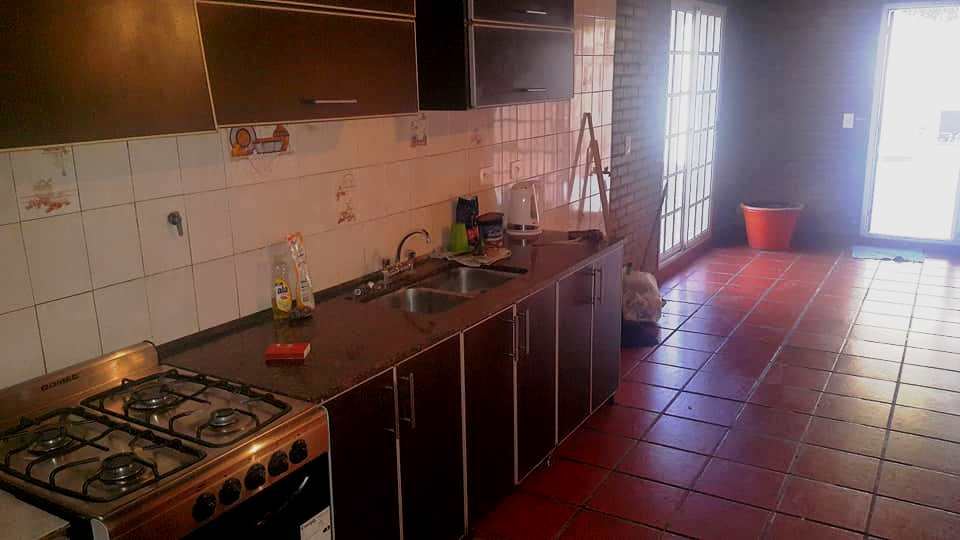 Dos baños completos, living-comedor muy luminoso, amplia cocina comedor con amoblamientos en melamina nuevos y artefacto de cocina a estrenar, patio parquizado con galería abierta, churrasquera y habitación de deposito. Cuenta con dos cocheras una techada y otra con tela media sombra.