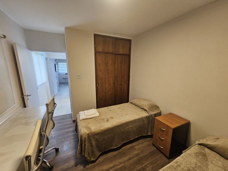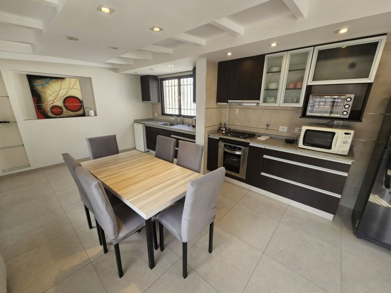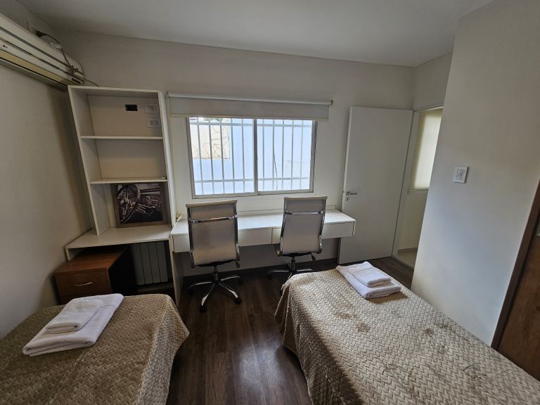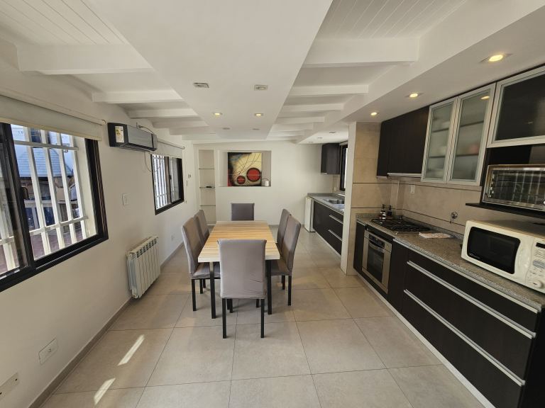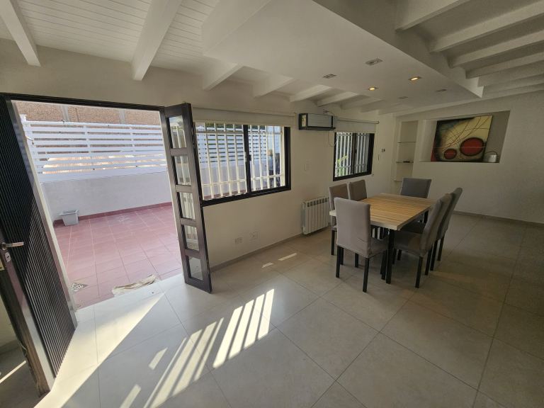 La misma se encuentra en perfecto estado de conservación, con pisos de porcelanatos en la totalidad de la propiedad y flotante en los dormitorios. La distribución del mismo cuenta con un amplio living comedor, baulera, antebaño con toilette para visitas y lavandería, cocina comedor con aire acondicionado y salida a terraza amplia con churrasquera y deposito, dos dormitorios con placares y aire acondicionado, estudio, baño principal con ducha escocesa.