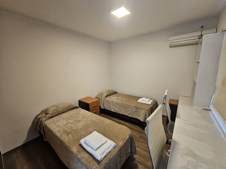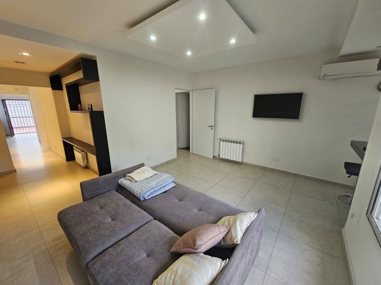 La misma se encuentra en perfecto estado de conservación, con pisos de porcelanatos en la totalidad de la propiedad y flotante en los dormitorios. La distribución del mismo cuenta con un amplio living comedor, baulera, antebaño con toilette para visitas y lavandería, cocina comedor con aire acondicionado y salida a terraza amplia con churrasquera y deposito, dos dormitorios con placares y aire acondicionado, estudio, baño principal con ducha escocesa.