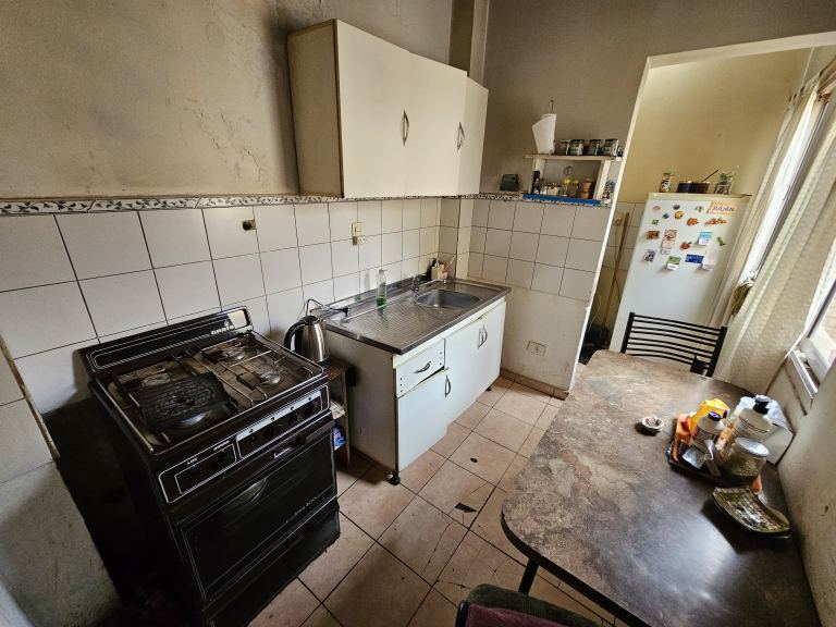 Al ingresar, te recibirá un luminoso living comedor, seguido de una cocina equipada y una pequeña lavandería. La propiedad cuenta con tres dormitorios, todos con placares empotrados, y un baño completo con ducha. El estado de conservación es regular, lo que brinda la oportunidad de realizar personalizaciones a gusto del nuevo propietario.