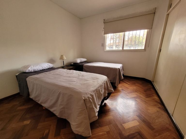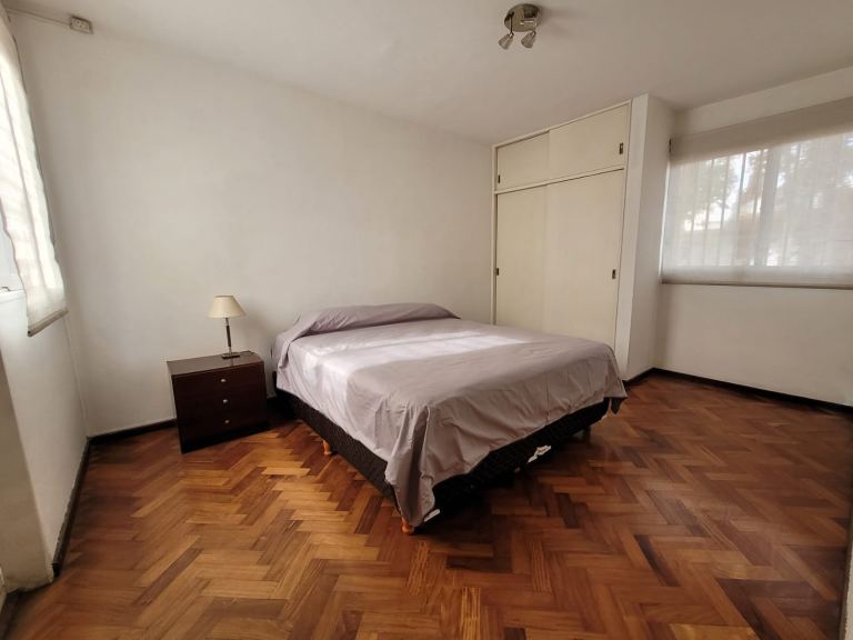 La propiedad cuenta con dos dormitorios, ambos con pisos de parquet y placares empotrados, que brindan un ambiente cálido y acogedor. Además, hay un baño completo con bañadera, perfecto para relajarse después de un largo día.