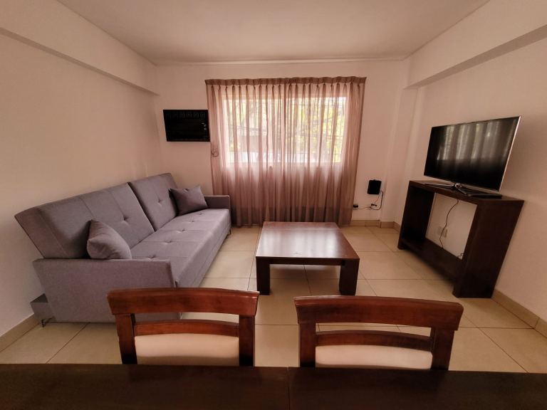 Al ingresar, nos encontramos con un amplio living comedor, ideal para recibir visitas o disfrutar en familia. La cocina comedor cuenta con amoblamiento nuevo y espacio más que suficiente para cocinar y compartir comidas. Además, el departamento tiene un baño tipo toilette para visitas, perfecto para la comodidad de los invitados.