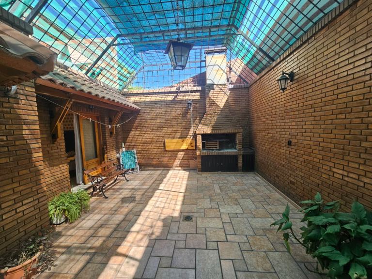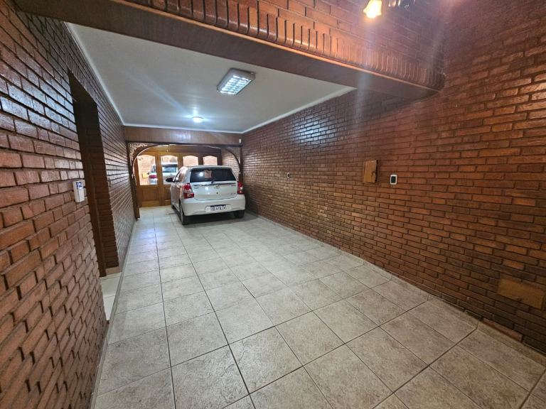 En el exterior, se encuentra una cochera pasante con capacidad para hasta 5 vehículos, un patio embaldosado con churrasquera.