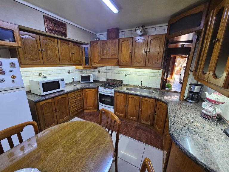 Al ingresar a la propiedad, nos encontramos con un luminoso living comedor con hogar, ideal para disfrutar de momentos en familia o con amigos. La cocina comedor cuenta con amoblamiento de madera maciza y se conecta con una amplia lavandería y un práctico depósito.