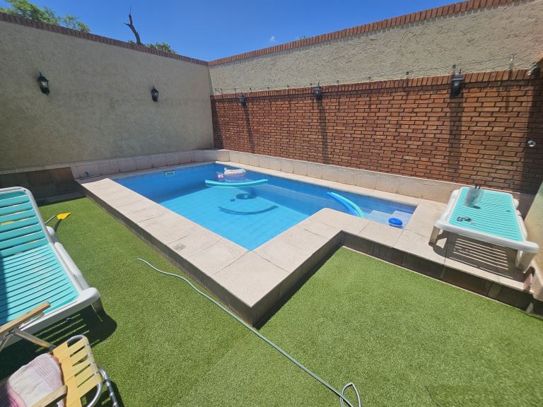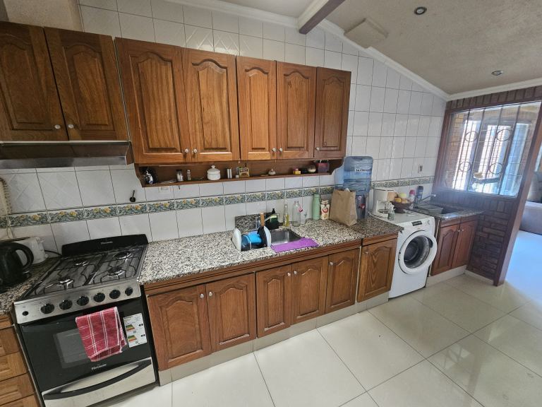 La casa se encuentra distribuida totalmente en una planta y cuenta de linving comedor amplio, cocina con comedor diario cochera doble para dos vehículos techada, churrasquera, patio con pileta de amplias dimensiones, sala de máquinas, tres habitaciones, baño principal y toilette.